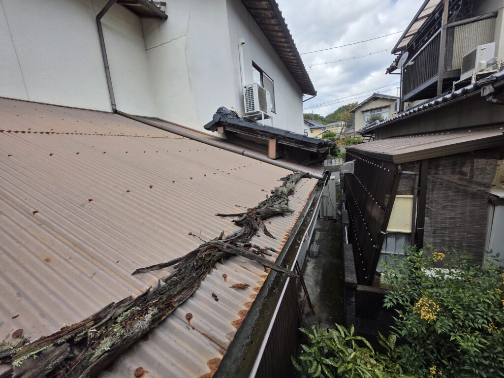 当時の雪止めに使われてたと思う木が腐食し、雨どいに流れ込み、雨どいが詰まってました。